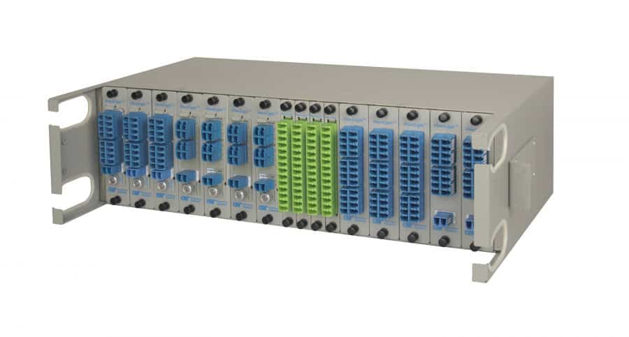 The 3RU OmniLight Chassis can support 14 standard LGX modules or 28 half-size LGX modules, and provides a highdensity solution for distributing wavelength services from Central Offices, head ends and data centers.