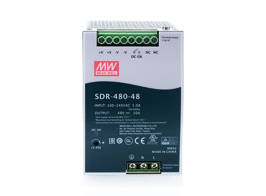 | 9170-PS-480 | Industrial DIN Rail Mounted Power Supply Input: 90 - 264 VAC 47 to 63Hz * Output: 48 - 55 VDC, 10.0A, 480 Watts |