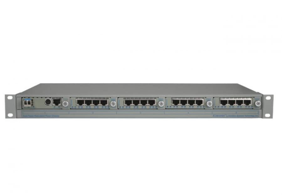 The iConverter 5-Module Chassis supports the entire family of iConverter fiber media converters. All iConverter modules are hot-swappable and support multiple mounting options. In addition to the 5-Module Chassis, they can be mounted in a 19-Module (2U, 3.5 inch high) space-saving rack-mountable chassis (19-inch or 23-inch) with triple redundant AC, 24VDC and 48VDC power supplies, in a 2-Module AC or 18-60VDC power chassis or in a 1-Module AC power chassis.