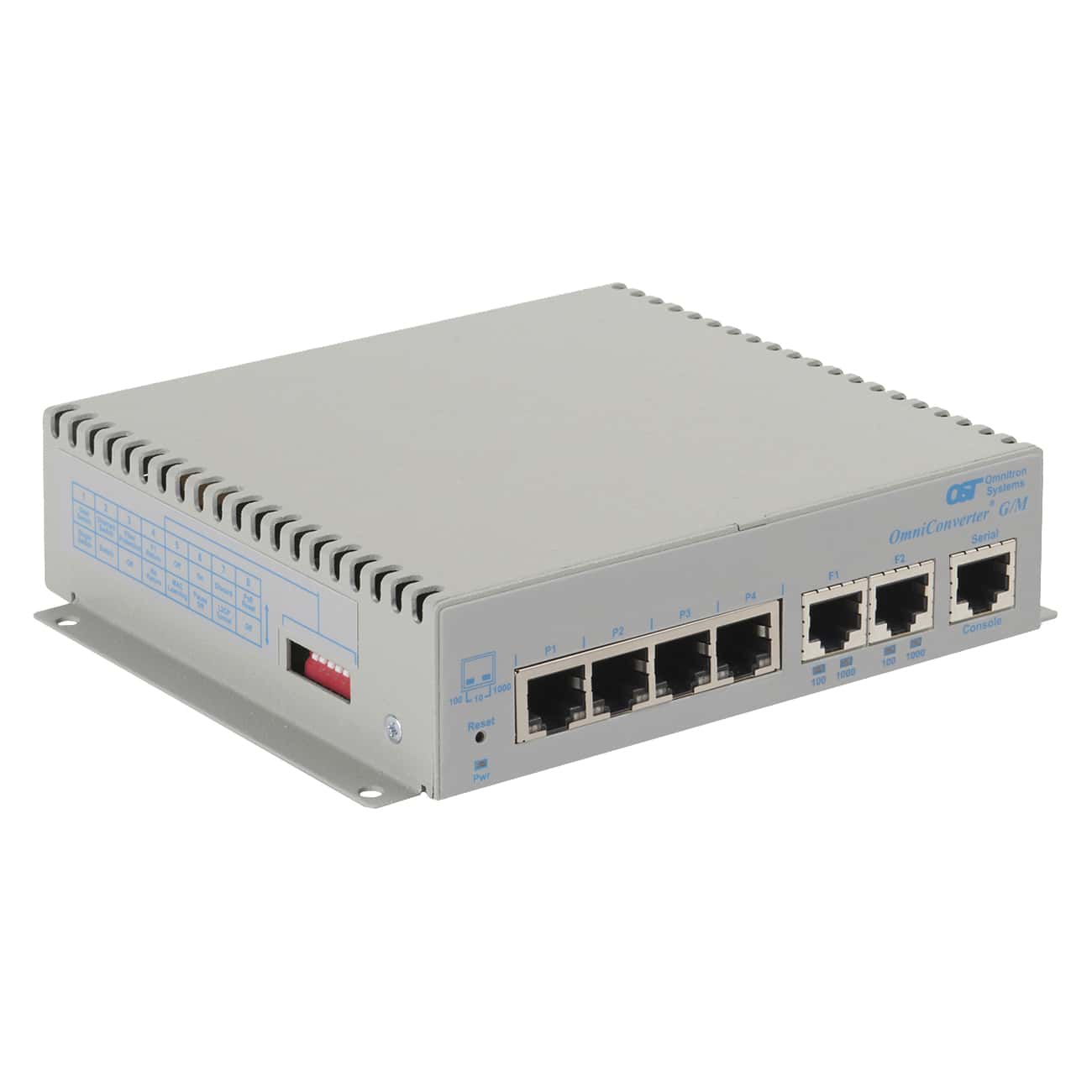 OmniConverter® G/M : 4 x 10/100/1Gbps RJ-45 No PoE to 2 x 10/100/1Gbps, RJ-45, No fiber, 100m, Managed Ethernet Switch, Standalone/Wall-Mount, US 100-240VAC, Commercial/Enterprise Temperature Range