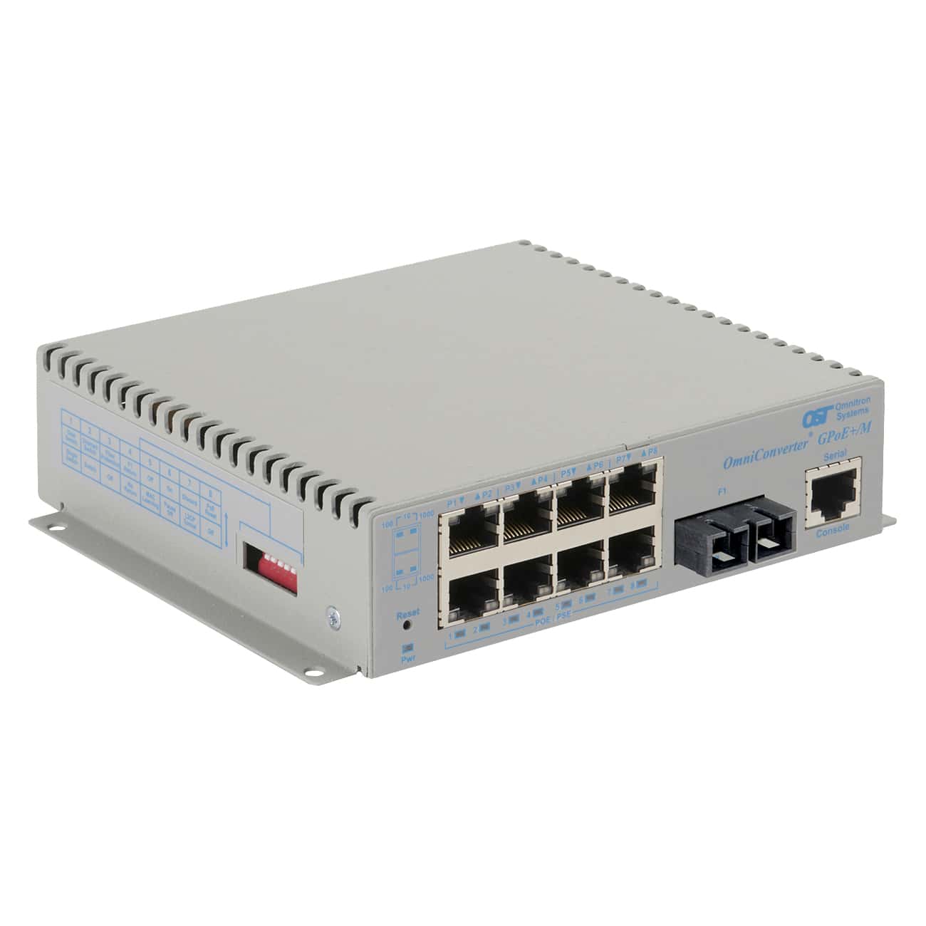 OmniConverter® GPoE+/M: 8 x 10/100/1Gbps RJ-45 PoE+ 30W to 1 x 1 Gbps, SC, SMDF, 1310, 12km, Managed Ethernet Switch, Standalone/Wall-Mount, JPN 100-240VAC, Wide Temperature Range