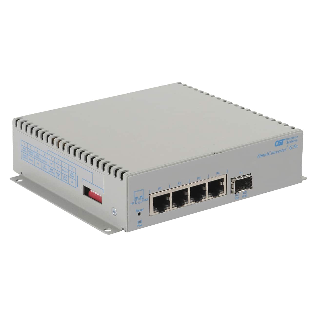 OmniConverter® G/Sx: 4 x 10/100/1Gbps RJ-45 No PoE to 1 x 1 Gbps, SC, SMSF, 1550/1310, 40km, Unmanaged Ethernet Switch, Standalone/Wall-Mount, US 100-240VAC, Commercial/Enterprise Temperature Range