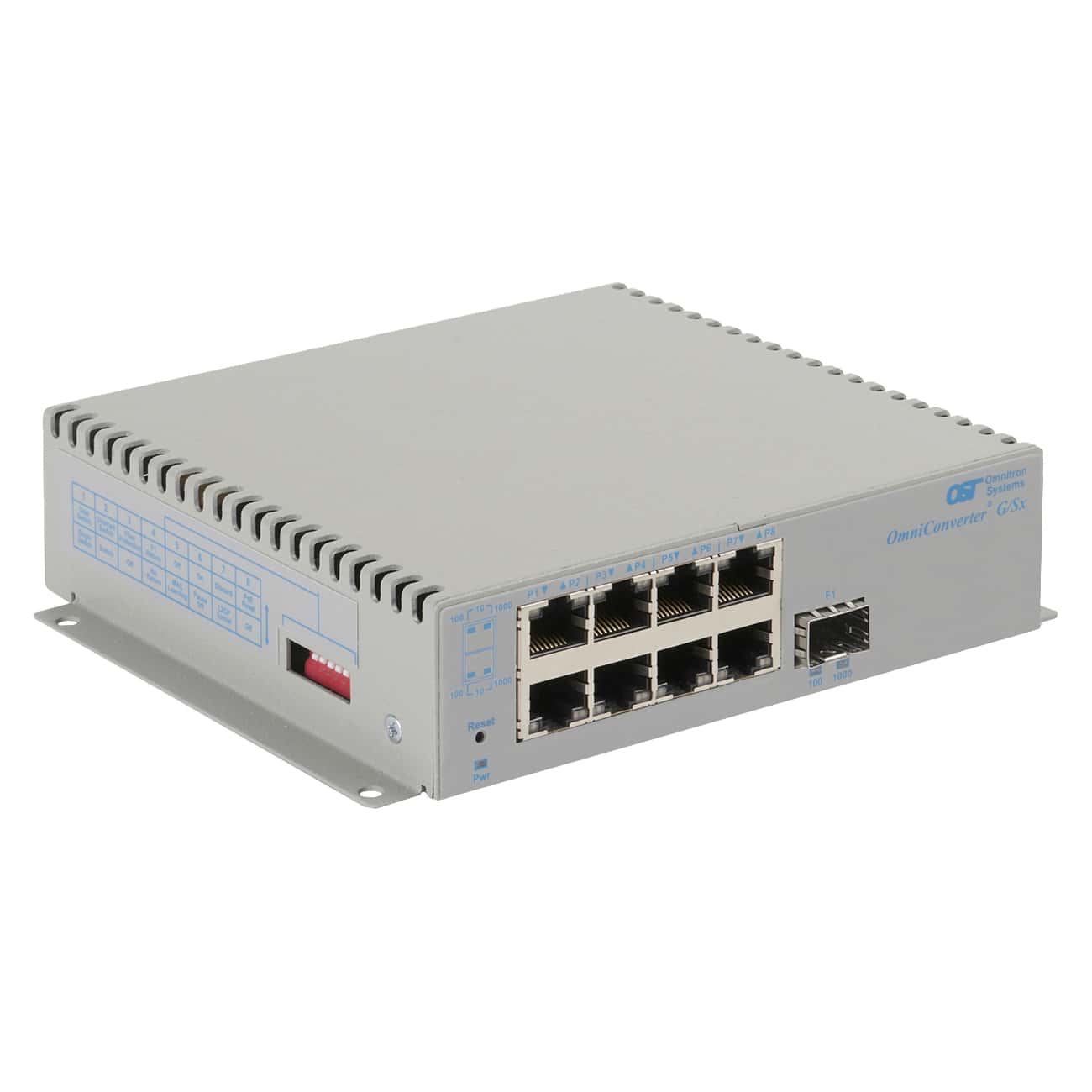 OmniConverter® G/Sx: 8 x 10/100/1Gbps RJ-45 No PoE to 1 x 1 Gbps, SFP, Fiber type depends on SFP, SFP-Dependent, Distance depends on SFP, Unmanaged Ethernet Switch, Standalone/Wall-Mount, DC 2-Pin Terminal, Extended Temperature Range