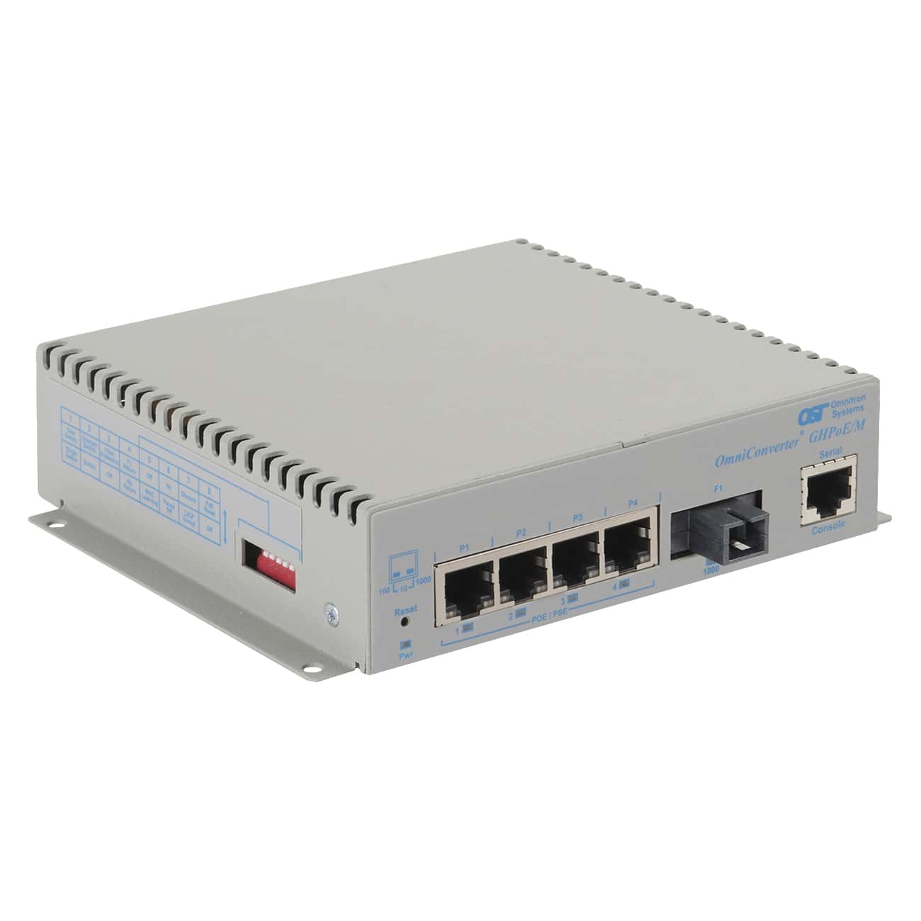 OmniConverter® GHPoEBT/M: 4 x 10/100/1Gbps RJ-45 PoE++/HPoE 60W to 1 x 1 Gbps, SC, SMSF, 1310/1550, 40km, Unmanaged Ethernet Switch, Standalone/Wall-Mount, JPN 100-240VAC, Wide Temperature Range