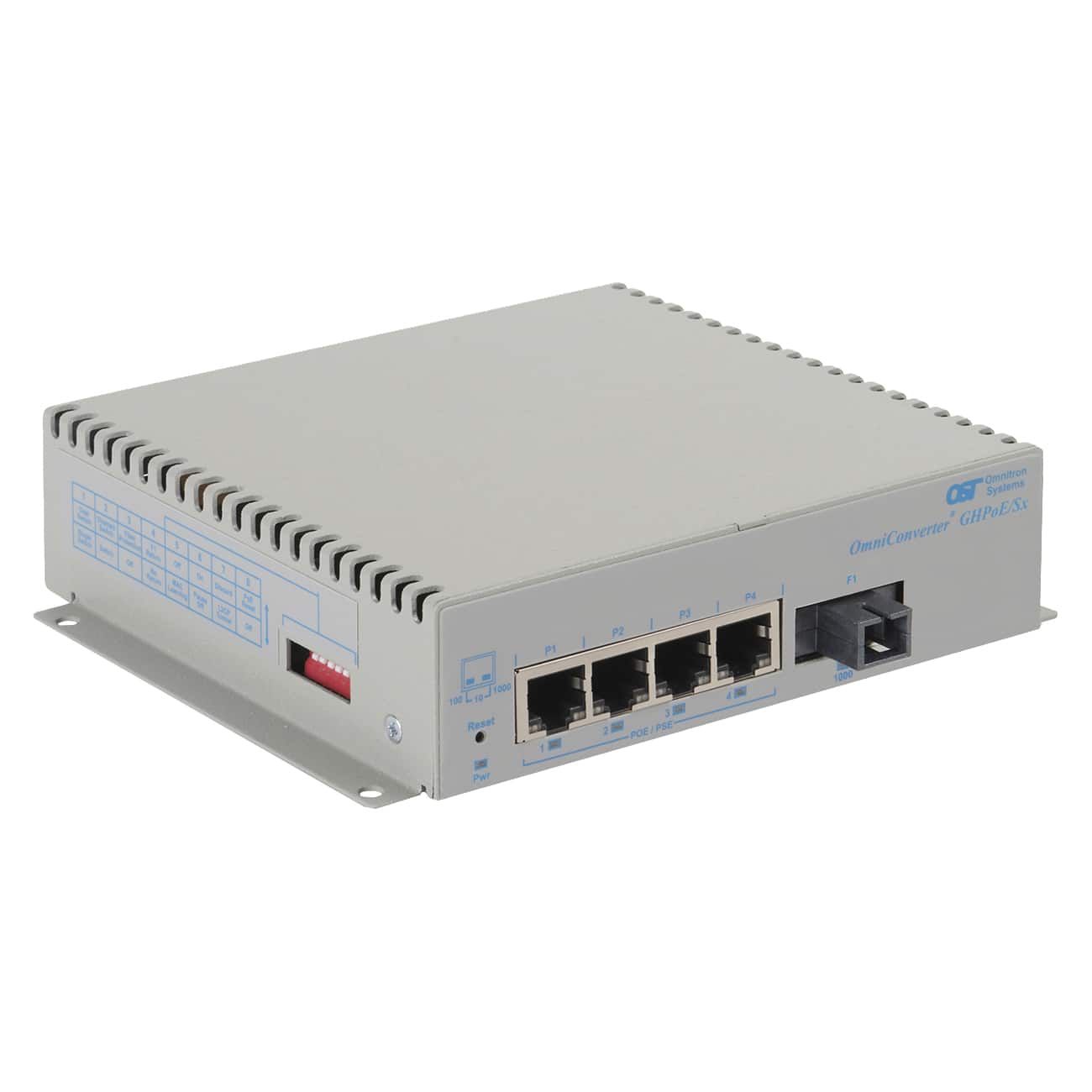 OmniConverter® GHPoEBT/Sx: 4 x 10/100/1Gbps RJ-45 PoE++/HPoE 100W to 1 x 1 Gbps, SC, SMSF, 1550/1310, 40km, Unmanaged Ethernet Switch, Standalone/Wall-Mount, DC 2-Pin Terminal, Wide Temperature Range