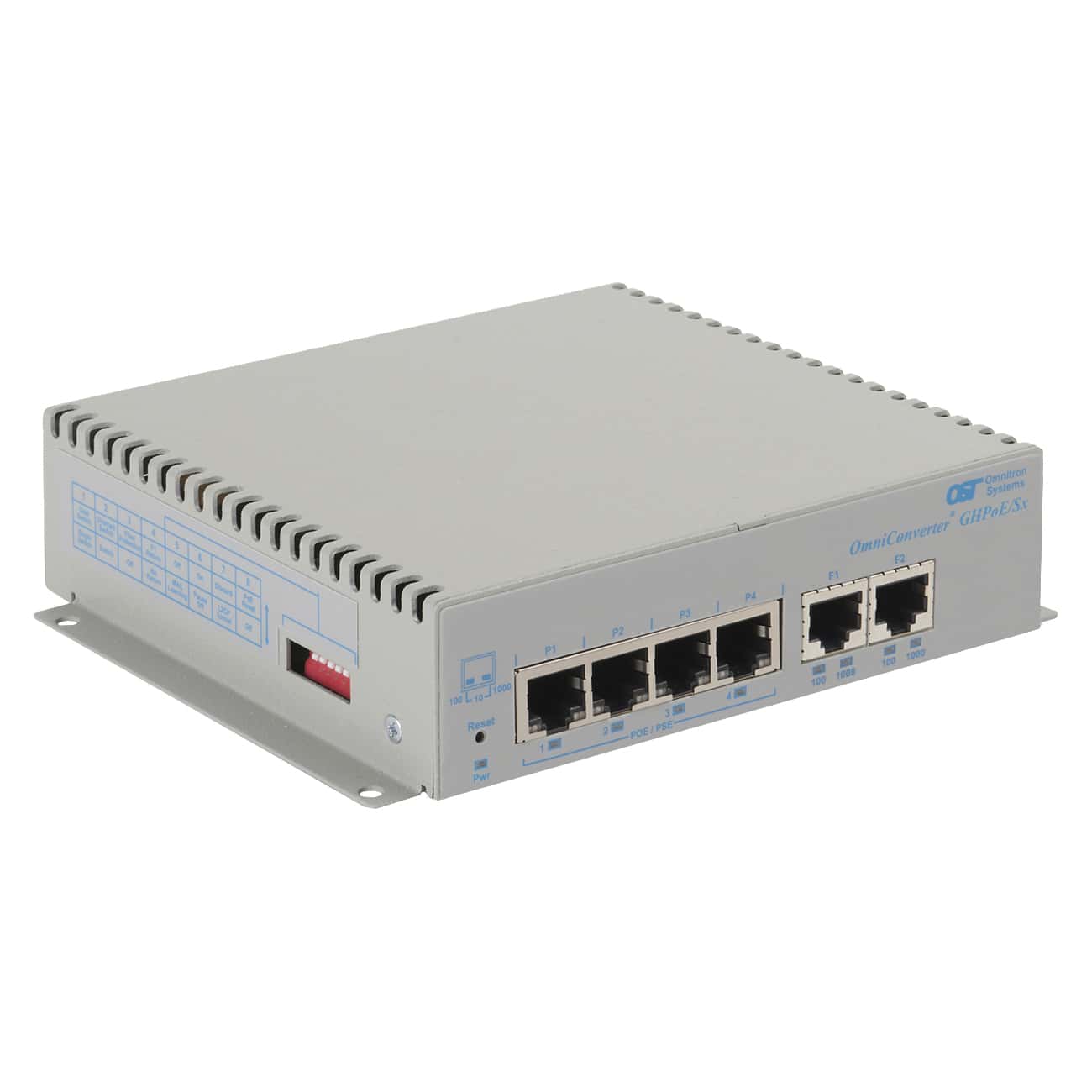 OmniConverter® GHPoEBT/Sx: 4 x 10/100/1Gbps RJ-45 PoE++/HPoE 100W to 2 x 10/100/1Gbps, RJ-45, No fiber, 100m, Unmanaged Ethernet Switch, Standalone/Wall-Mount, DC 2-Pin Terminal, Extended Temperature Range
