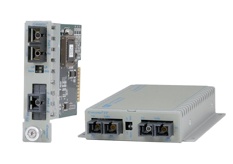 iConverter OC3FF models support multimode and single-mode dual fiber with ST and SC connectors; and single-mode single-fiber with SC connectors.