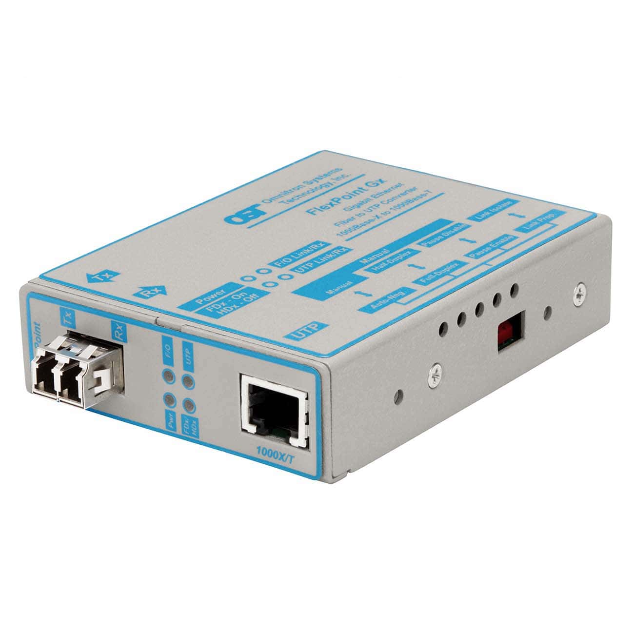 FlexPoint® Gx: 1 Gbps RJ-45 to 1 Gbps, LC, Multimode Dual Fiber, 850nm, 220m, Univ 100-240VAC, Commercial Temperature 0 to 50 deg C