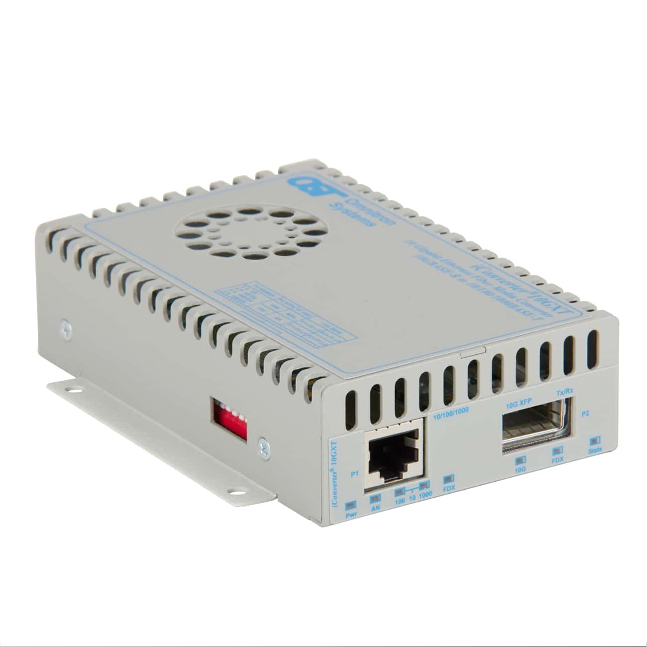 iConverter® 10GXT: 10/100/1Gbps RJ-45 to 10 Gbps, XFP, Fiber Type depends on XFP, Wavelength depends on XFP, Distance depends on XFP, No AC/DC Power Adapter, Extended Temperature -40 to 75 deg C