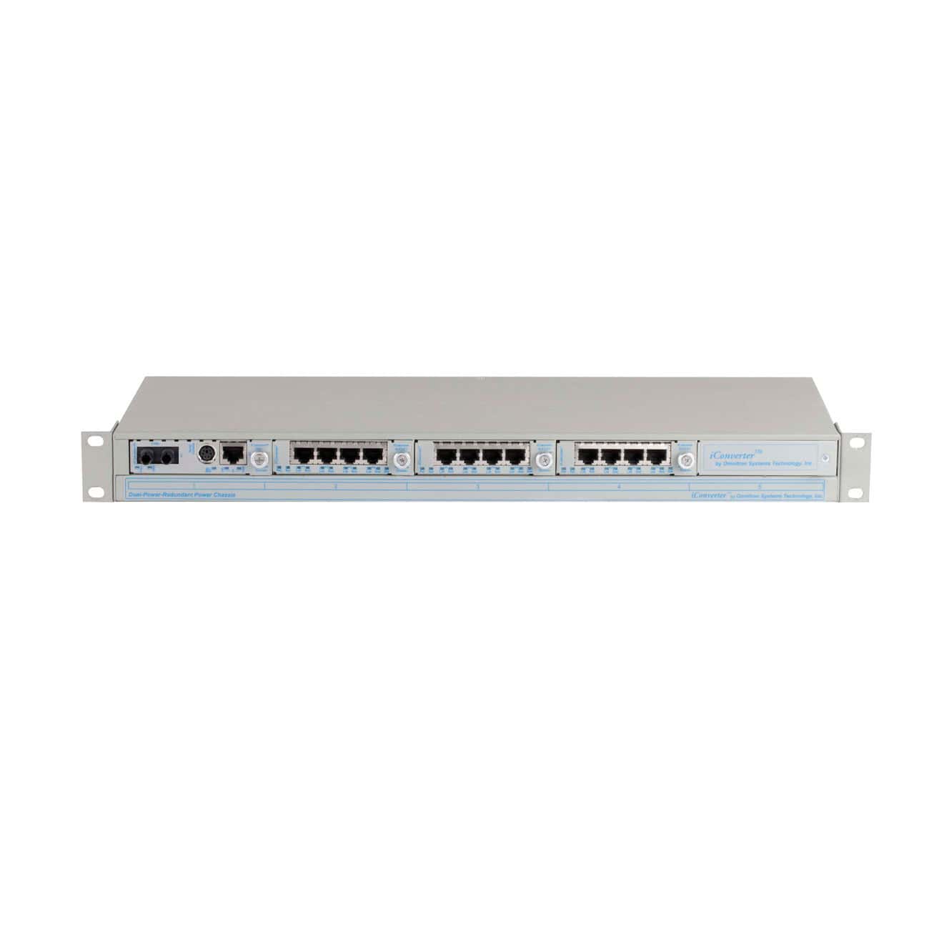 iConverter® T1/E1 MUX: 12 x RJ-48 with 10/100/1000 RJ-45 Managed Multiplexer, Standalone/Rack Mount, ST, 850nm, MM/DF, 550 meters, 2 x +/- 36 to 60VDC, Commercial Temp (0 to 50 deg C)